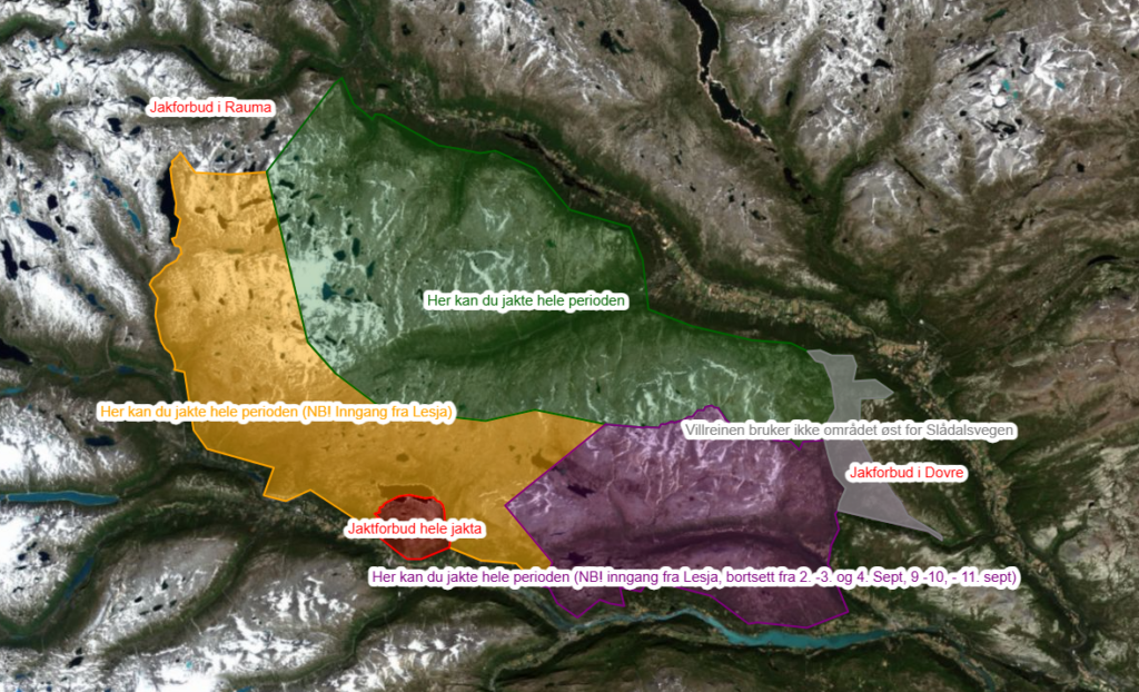 Kart over jaktområdet Reinheimen 2025: